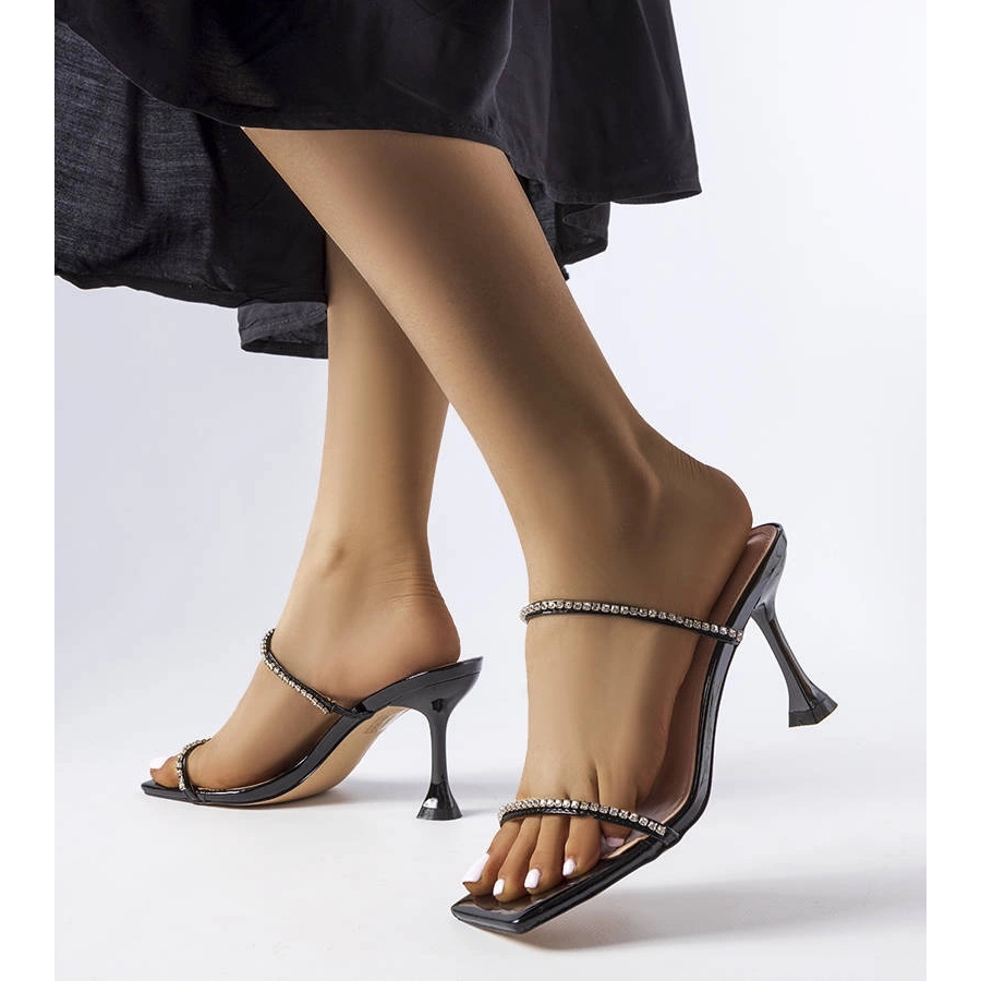 Détails: Sandales noires à talons hauts avec strass Paso le noir