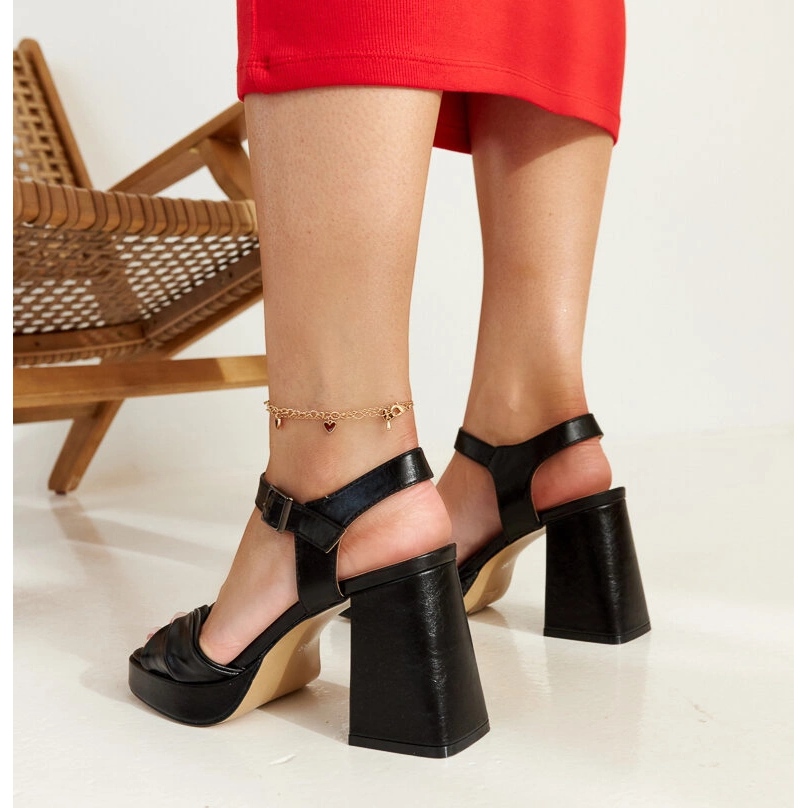 Pour résumer, les sandales à talons hauts en éco-cuir noir sont une combinaison de style, de confort et de commodité. Ils seront non seulement une décoration pour les journées d'été, mais aussi un témoignage de votre passion pour les dernières tendances, tout en gardant le souci de l'environnement. Parfait pour toutes les fashionistas !