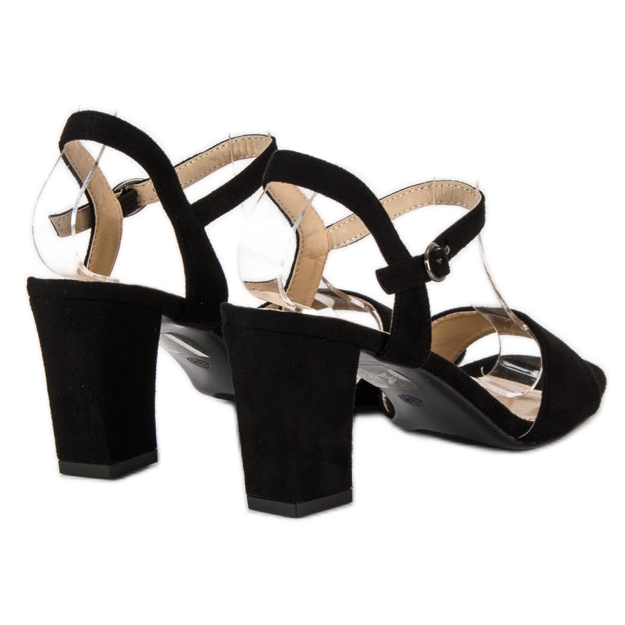 La couleur noire les rend extrêmement universelles : elles s'accordent parfaitement avec les robes et les pantalons, ajoutant une touche élégante à n'importe quel style. Le talon bloc de 7,5 cm de haut garantit stabilité et confort lors du port. Grâce à la boucle, vous pouvez facilement ajuster leur taille à vos besoins, ce qui en fait un choix idéal pour diverses occasions.