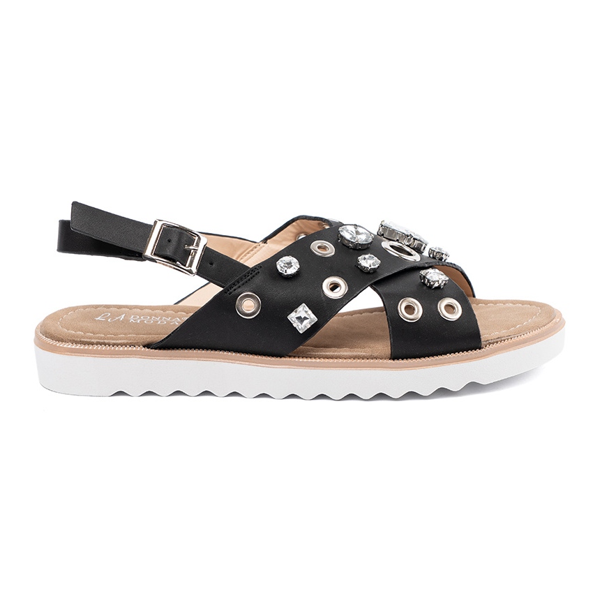 Découvrez la nouvelle dimension du confort et du style avec des sandales noires avec des goujons Shelvt décoratifs. Ces sandales féminines uniques sont un excellent choix pour l'été, idéal pour les stylisations de tous les jours. Fabriqués d'une imitation de peau à 100% de qualité élevée, ils offrent un look élégant, tout en permettant au confort de porter.