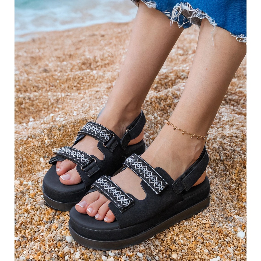 Découvrez le coup de mode de la saison - des sandales noires avec des rayures brodées sur la plate-forme qui raviront chaque femme avec leur élégance et leur confort. Le modèle PL367 est une combinaison parfaite de style et de fonctionnalité qui fera gagner vos stylisations.