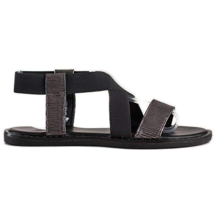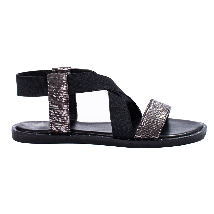 Fabriquées à partir de matériaux de haute qualité, les sandales se distinguent par leur design unique. La finition noire avec des inserts brillants attire le regard et leur donne un caractère élégant. Le matériau extérieur, composé à 50 % de simili cuir et à 50 % de tissu, assure durabilité et résistance aux dommages mécaniques, ce qui en fait un choix idéal pour tous les jours.