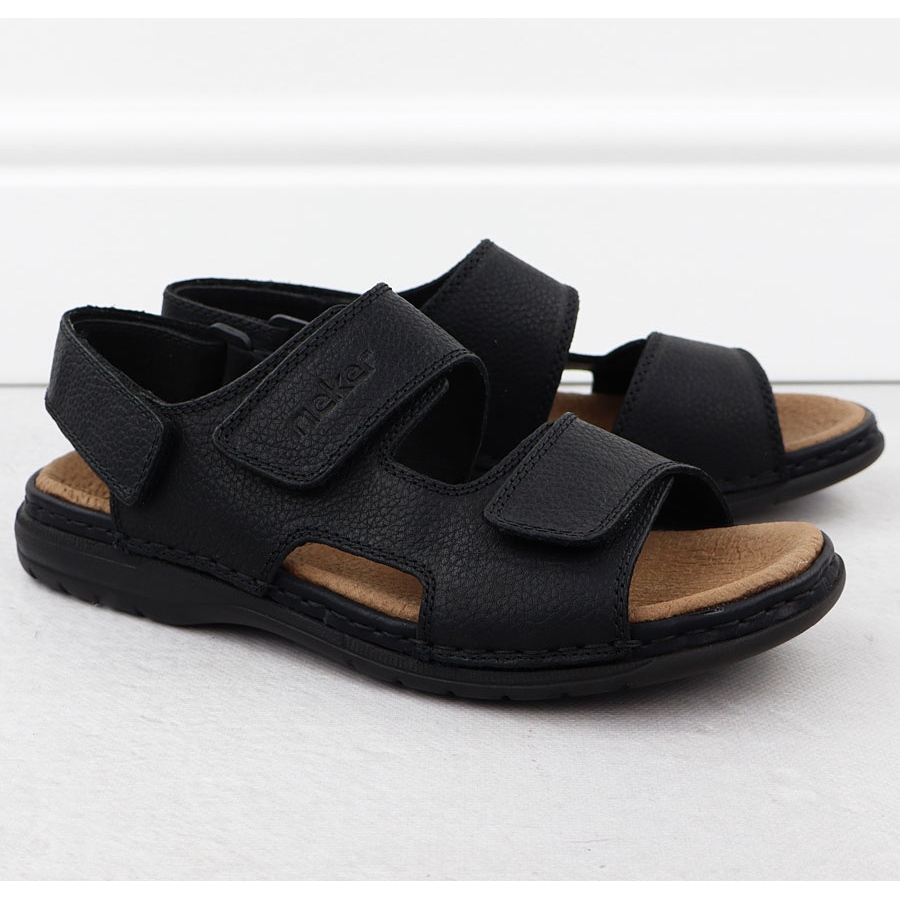 Rieker Sandales noires confortables pour hommes en cuir Black Rieker 25558-01 le noir