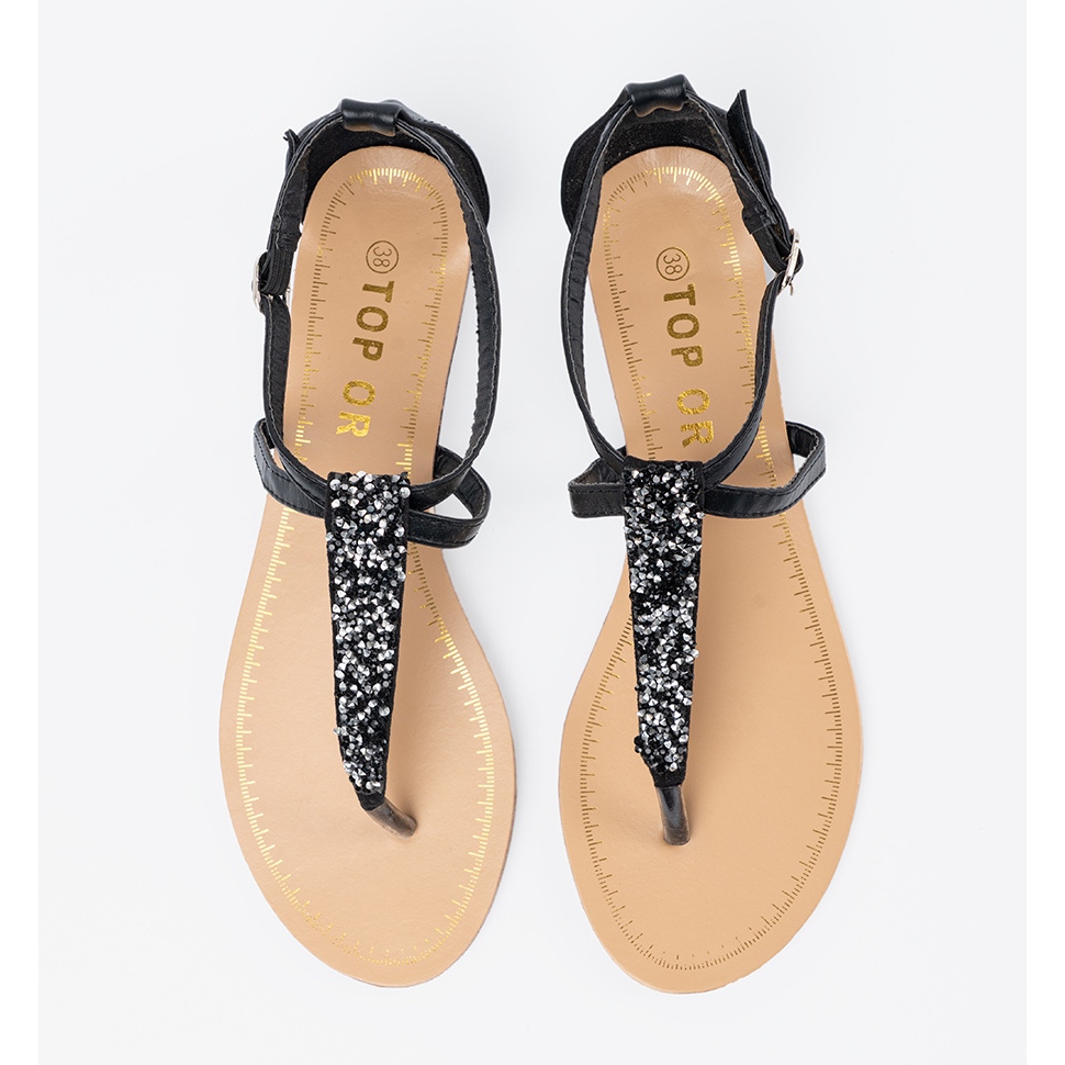 Un ajout intéressant sont des strass délicat, qui soulignent subtilement la féminité et rendent les sandales plus élégantes. La fixation de la boucle facilite la mise en place des chaussures et retirer les chaussures, et le nez ouvert fait respirer librement le pied.