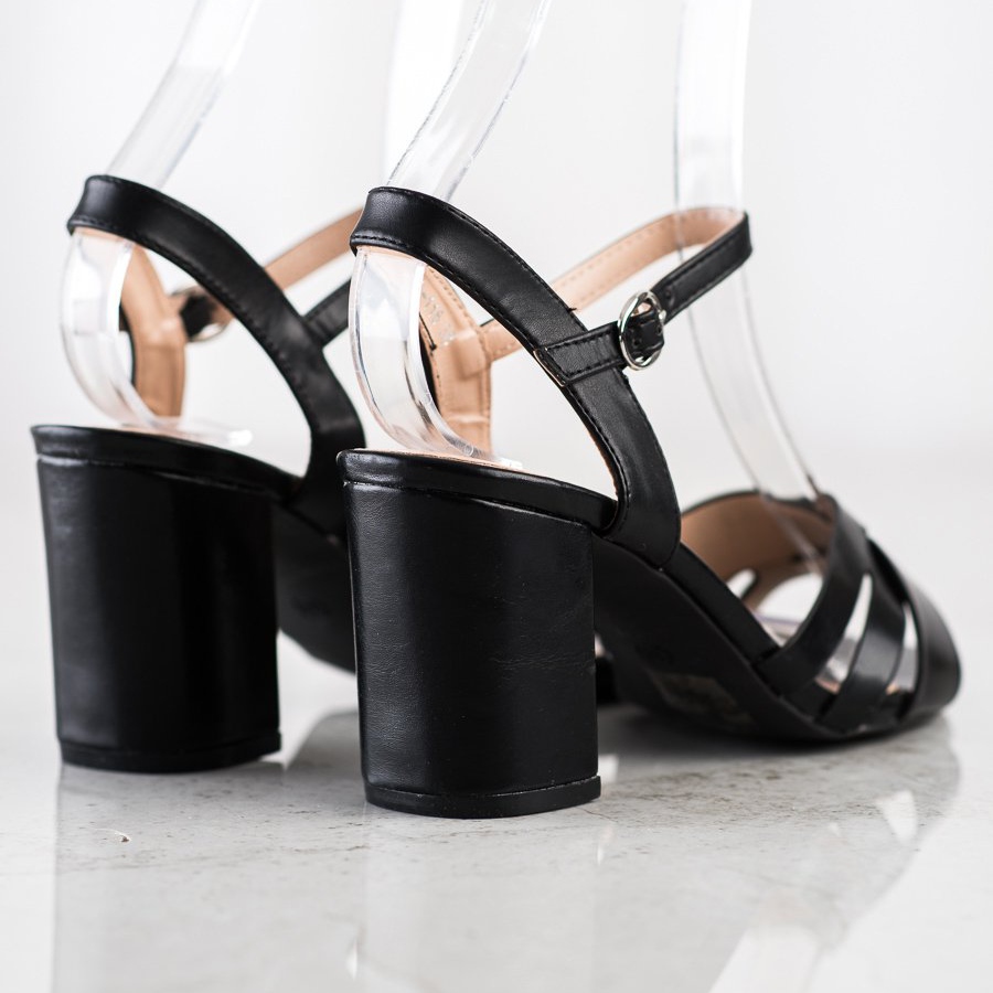 Ces sandales se distinguent par un talon en forme de bloc de huit centimètres, qui n'est pas seulement un détail à la mode, mais assure également stabilité et confort lors de la marche. La couleur noire élégante et l'absence de décorations ou de motifs rendent les sandales Laura Mode universelles et s'adaptent facilement à tous les styles.