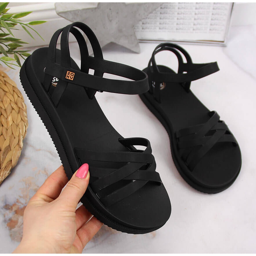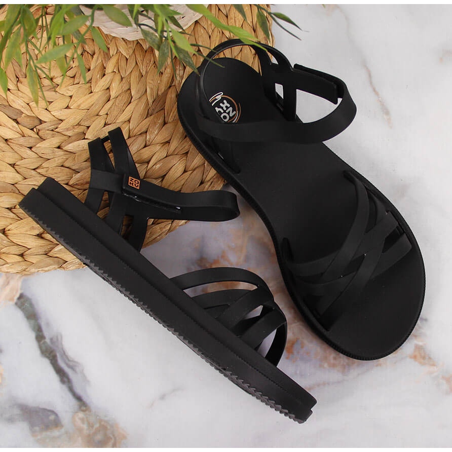 Détails: Sandales noires en caoutchouc pour femmes avec velcro Zaxy JJ285068 le noir