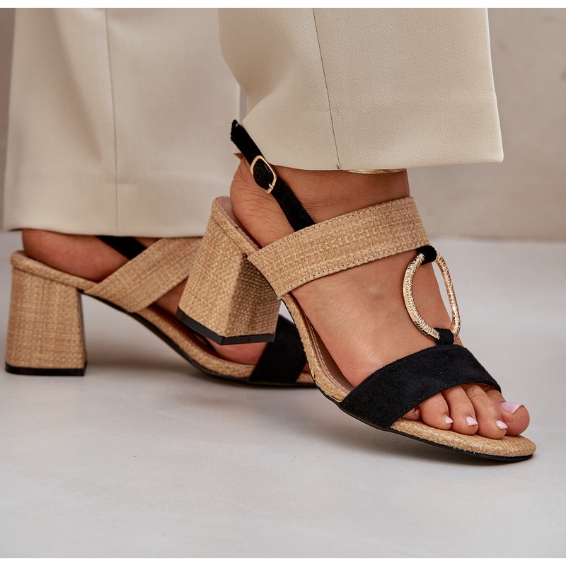 La hauteur du talon de 8 cm signifie que les sandales allongent optiquement les jambes, et la semelle beige va parfaitement avec la tige noire, créant un tout harmonieux. Grâce à leur coupe universelle, ces sandales sont excellentes dans les stylisations d'été - à la fois quotidiennement et pour des occasions plus formelles.