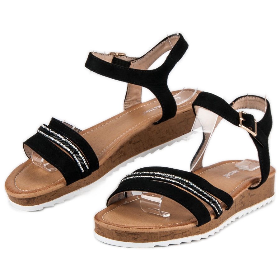 Fabriqués en cuir suédé écologique de haute qualité, ils offrent confort et durabilité. Les sandales ont un talon plat de 3 cm, ce qui les rend extrêmement confortables et assure en même temps une stabilité sur diverses surfaces. La fermeture à boucle permet un ajustement facile au pied, ce qui augmente le confort d'utilisation.