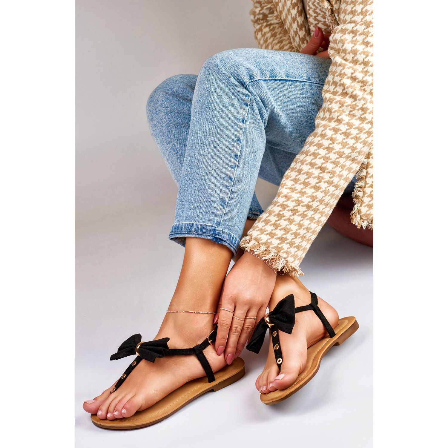Détails: Sandales noires pour femmes avec un nœud