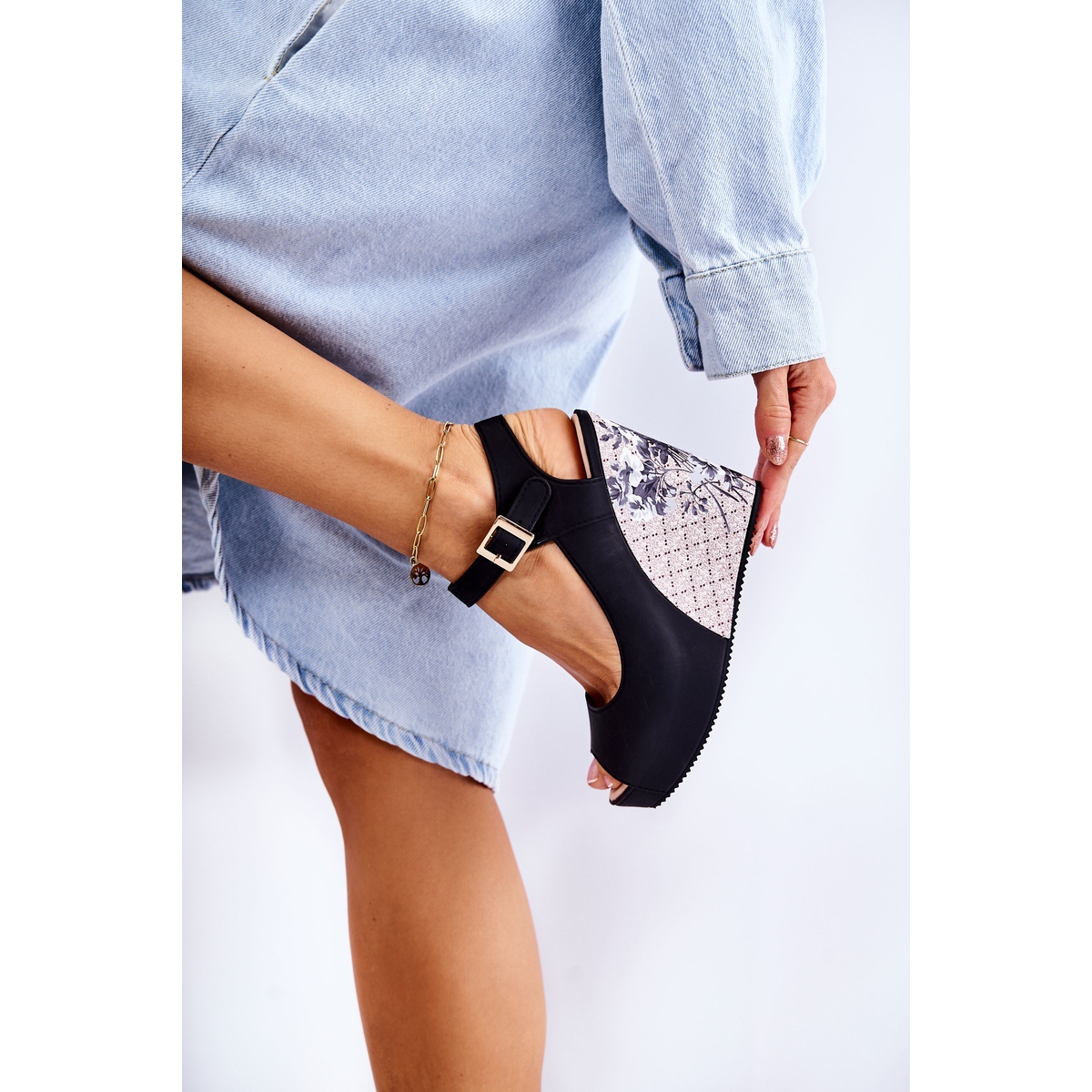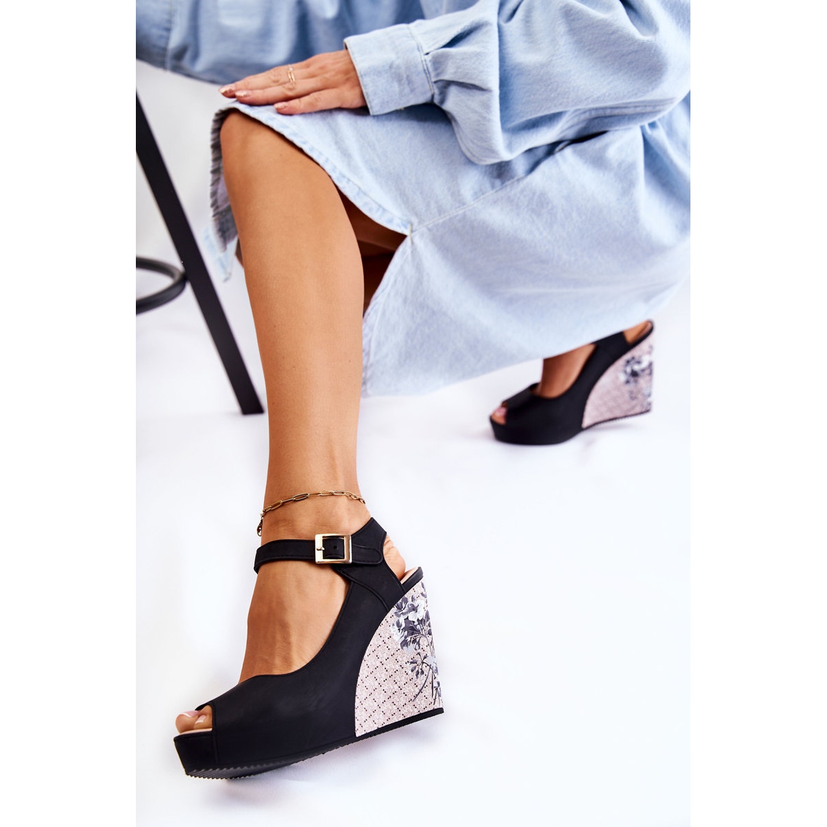 Ces sandales pour femmes se distinguent par une fabrication de haute qualité, qui garantit un confort de port tout au long de la journée. La semelle intérieure en cuir écologique assure une circulation d'air adéquate et un confort pour vos pieds, même par temps chaud. Grâce à la cale stable de 10 cm de haut, vous gagnerez en confiance en vous et allongerez optiquement vos jambes.
