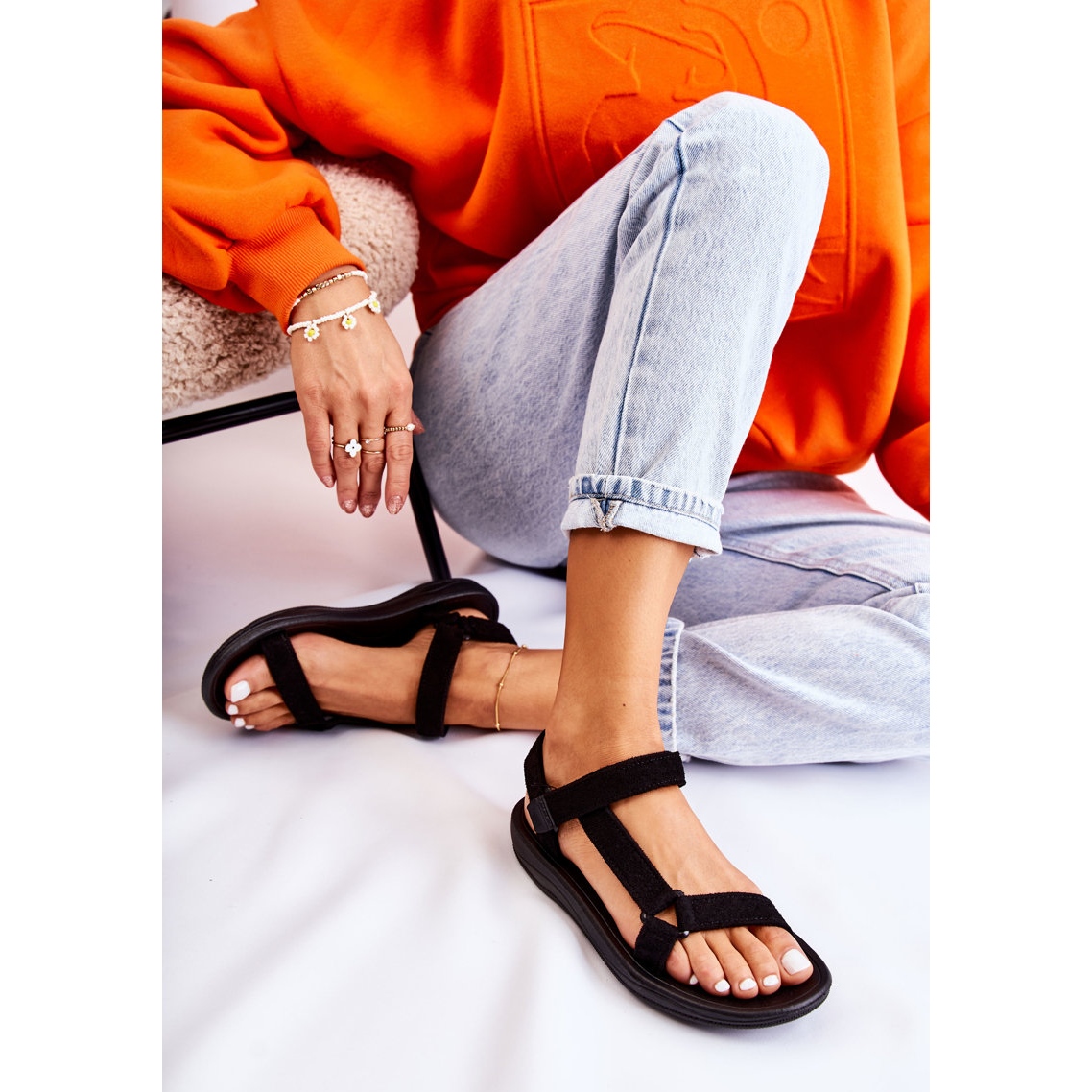 Détails: Sandales noires sportives en daim féminin