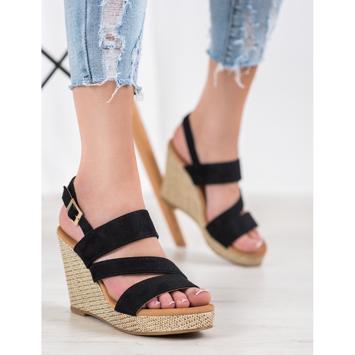 Découvrez l'élégance estivale avec les sandales Small Swan dans une couleur noire classique ! Ces phénoménales sandales compensées allient sensualité et confort, ce qui en fait un élément incontournable de chaque tenue estivale. Grâce à une large cale de 10 cm de haut, ils allongent non seulement magnifiquement vos jambes, mais assurent également la stabilité pendant la marche.