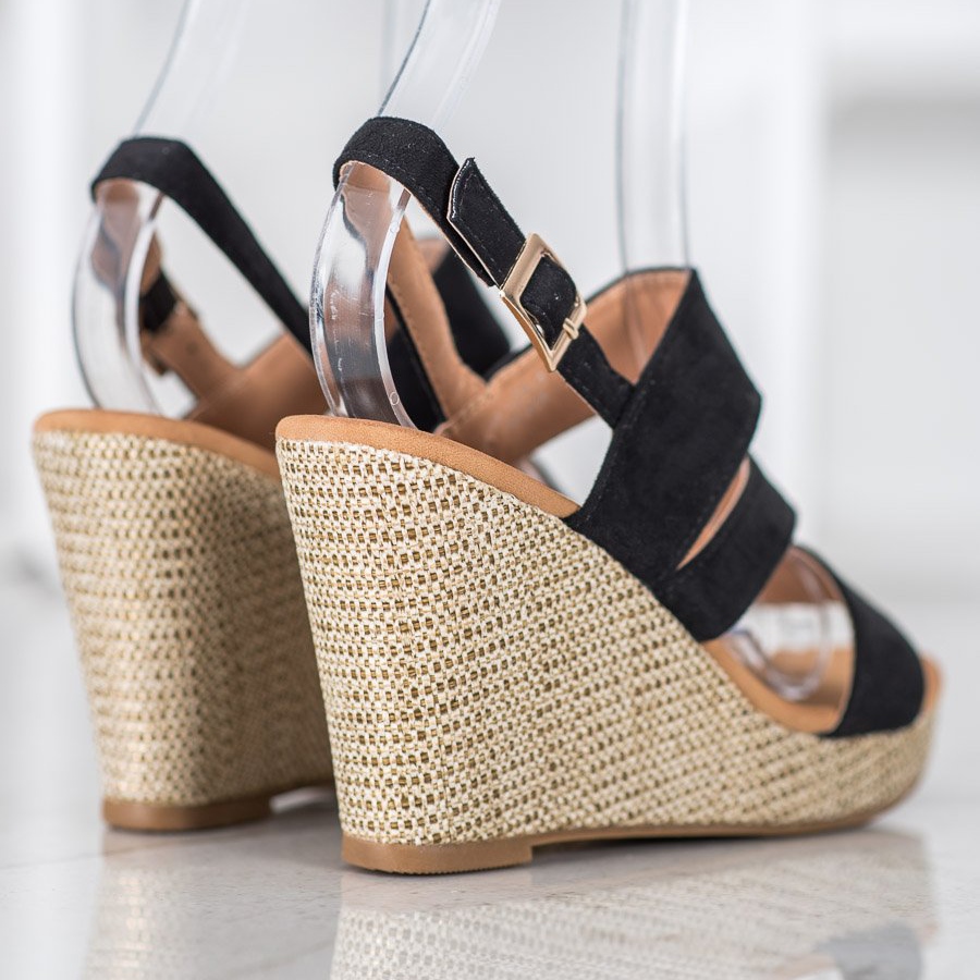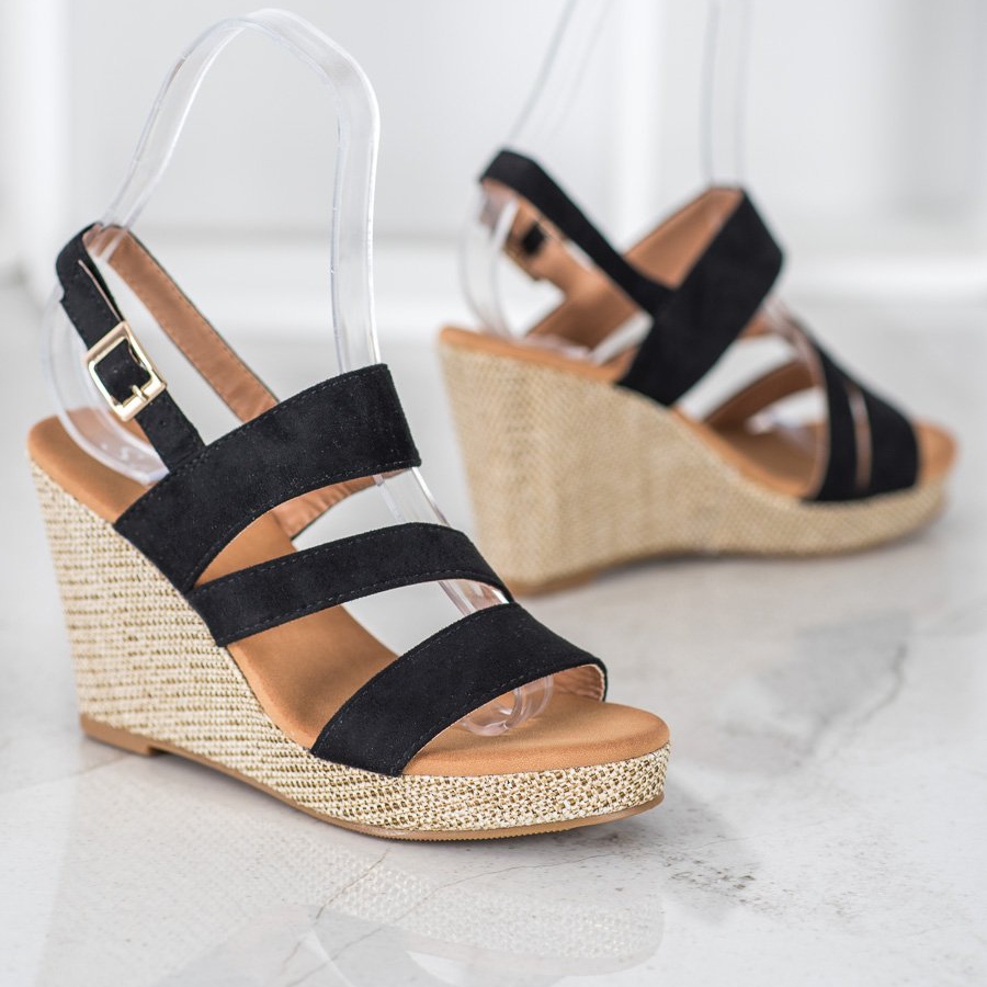 Détails: Small Swan Sandales noires sur compensées le noir