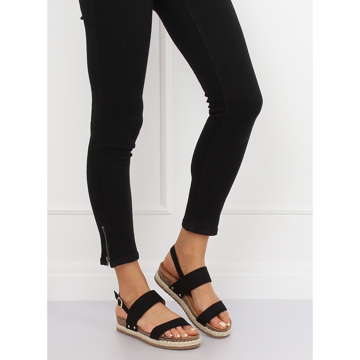 Inna marka Sandales noires sur semelle liège CH-118 Noir le noir