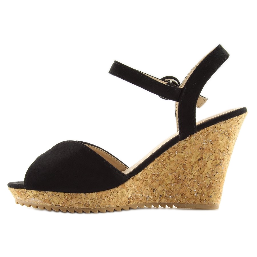 Détails: Sandales noires sur talon compensé en liège 3811 le noir