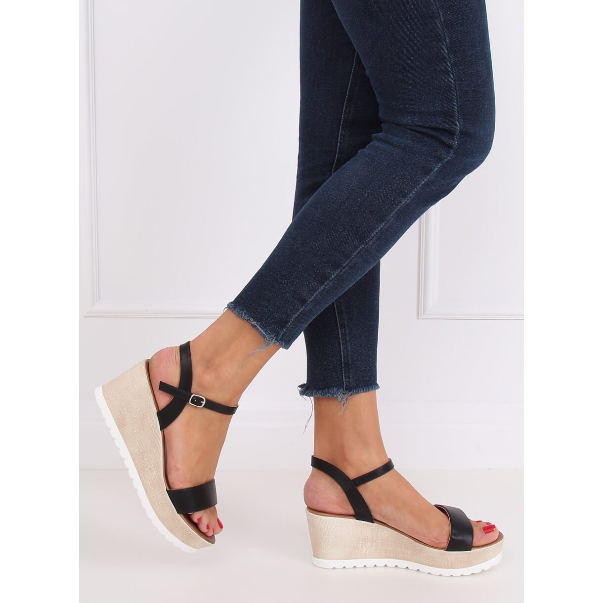 Les sandales compensées noires NS107P sont un choix idéal pour les femmes qui apprécient le confort et le style. Ces élégantes sandales, avec une hauteur de coin de 7,5 cm, mettront parfaitement en valeur n'importe quel style, en lui ajoutant légèreté et élégance. Grâce à la plateforme de 3,5 cm de hauteur, vous vous sentirez stable et confortable, même si vous le portez longtemps.
