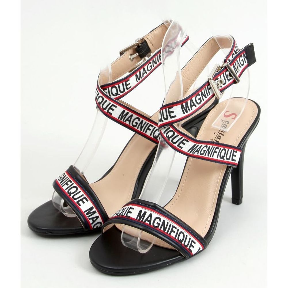Sandales noires sur talon haut LL-170P Noir blanc