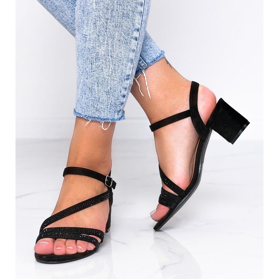 Détails: Sandales noires sur tige avec zircone cubique Hydra