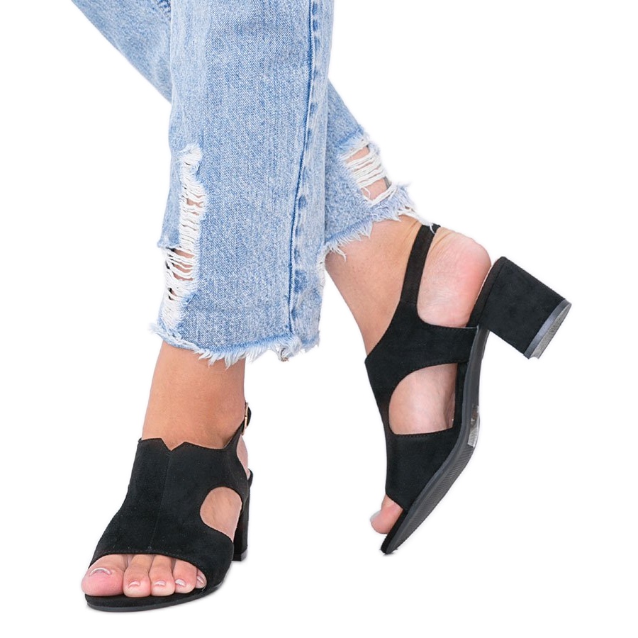 Détails: Sandales noires sur un poteau bas Buenna
