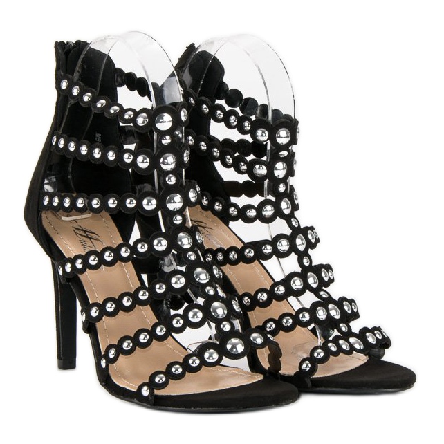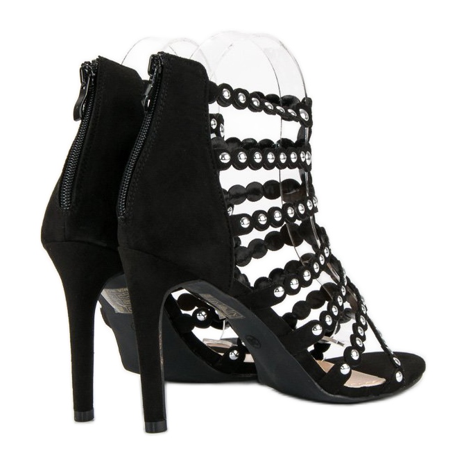 Les sandales noires soulignent parfaitement la finesse des jambes grâce au talon haut de 10,5 cm, qui rendra tout style classe. Un avantage supplémentaire sont les strass qui donnent du caractère et de la légèreté aux chaussures. Les sandales sont équipées d'une fermeture éclair pratique, ce qui les rend faciles à enfiler et à enlever.