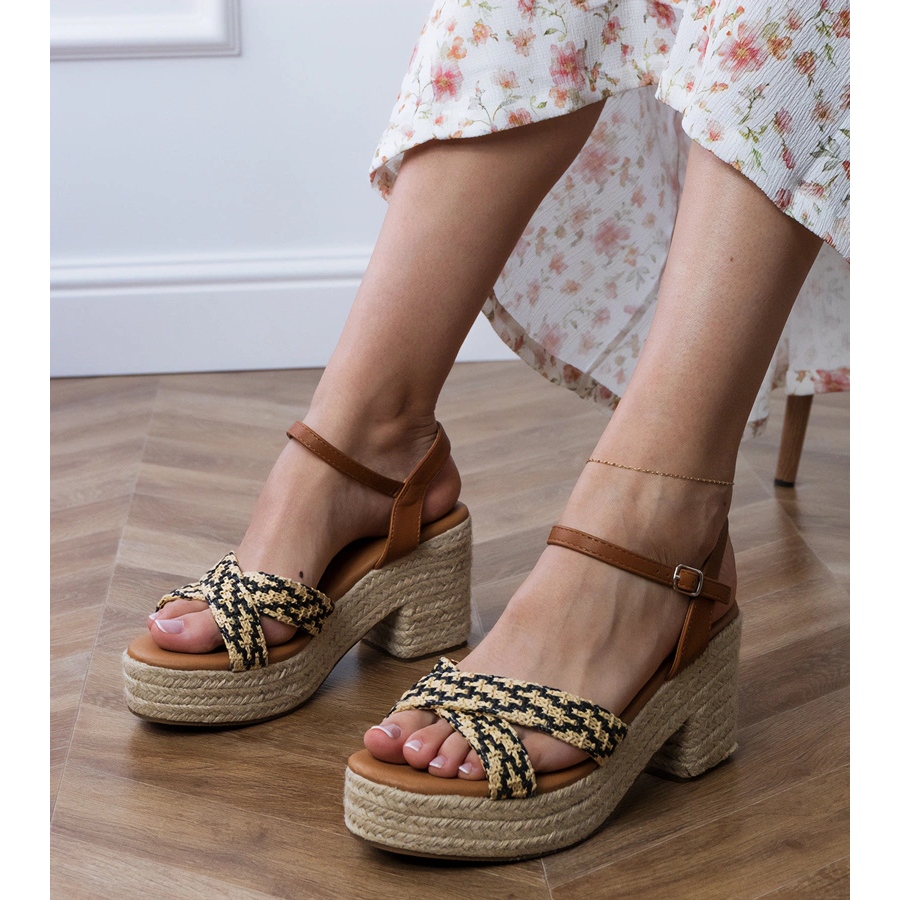 Cherchez-vous une coupe classique? Le nez rond des sandales en combinaison avec une tige tressée crée un design unique et subtil qui correspondra à de nombreux styles - du quotidien au soir. La semelle brune, en plastique, offre de la stabilité et du confort, qui est extrêmement important lors de longues promenades ou des rassemblements sociaux d'été.