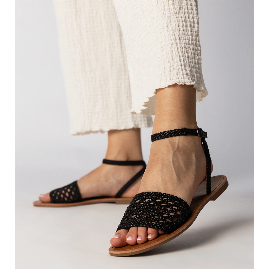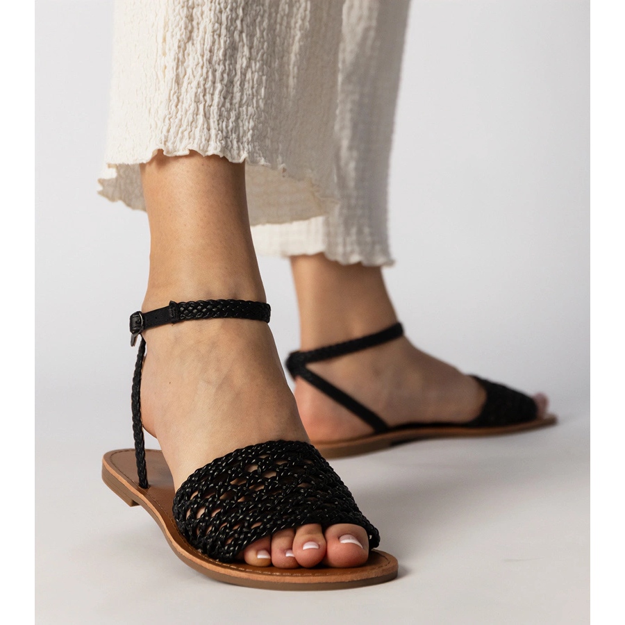 Les sandales noires tressées sur une semelle plate sont le choix parfait pour les femmes modernes qui veulent combiner l'élégance et le confort. Le modèle JB1920 se distingue par une conception ouverte, qui attirera certainement l'attention et ajoutera la légèreté à toute stylisation. Grâce à la hauteur de la semelle de seulement 1 cm, ces sandales garantissent le confort de porter toute la journée.