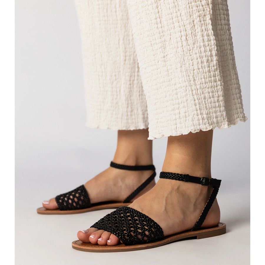 Détails: Sandales noires tissées sur une semelle plate le noir