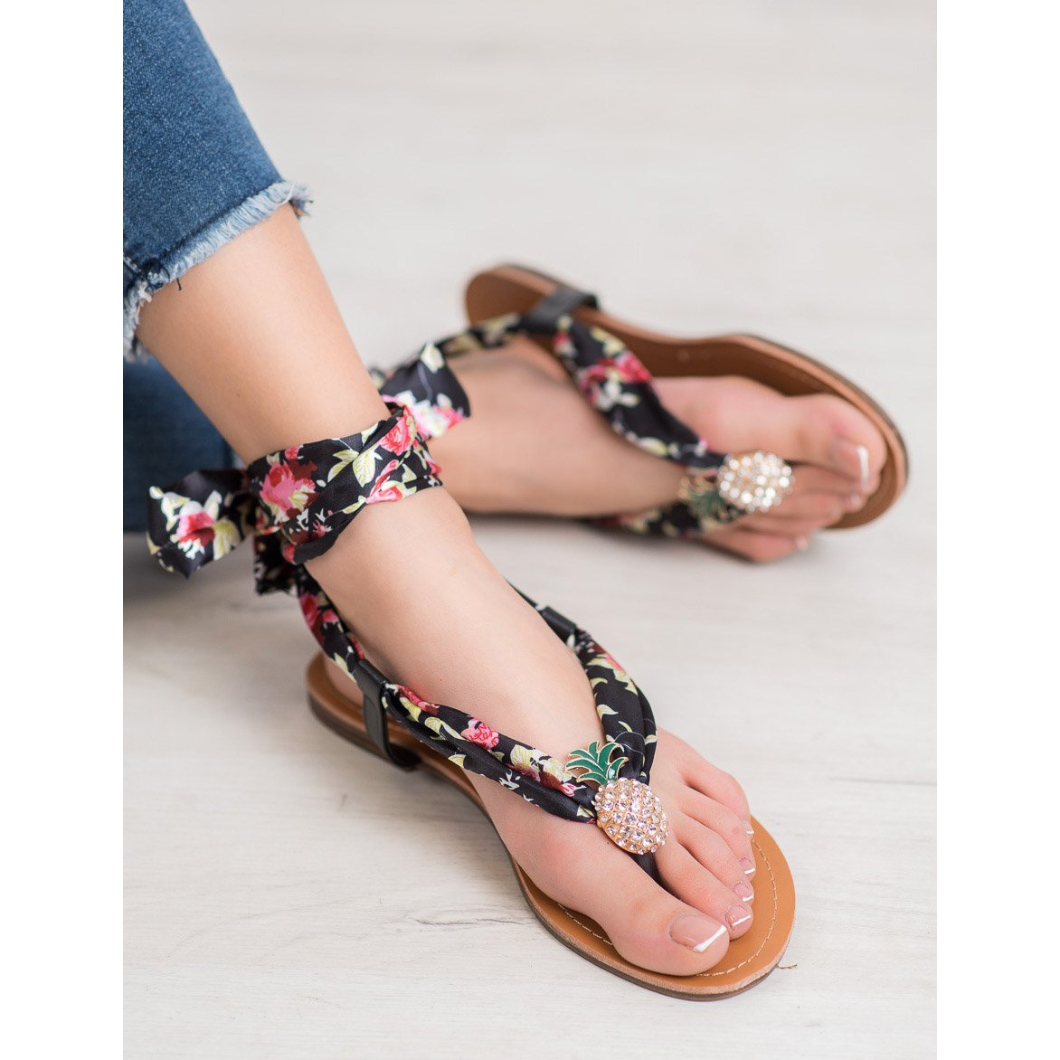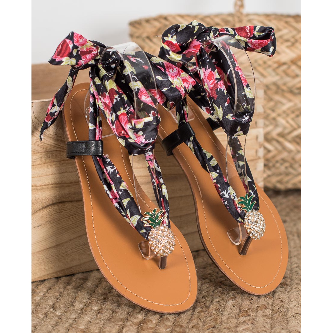Êtes-vous à la recherche des sandales parfaites pour les journées d’été ? Voici une proposition qui allie confort et design tendance : les sandales à lacets SHELOVET avec ananas en noir et multicolore !