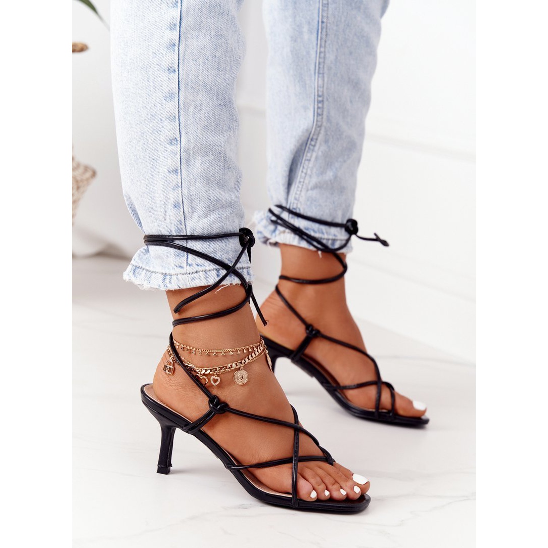 PS1 PS1 Sandales nouées sur un talon haut avec un bout carré Black Runway le noir