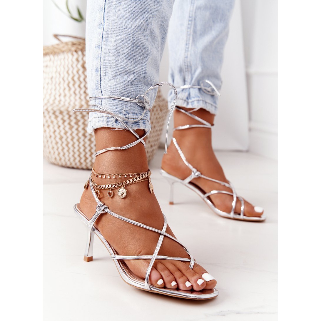 PS1 PS1 Sandales nouées sur un talon haut avec un bout carré Silver Runway argent