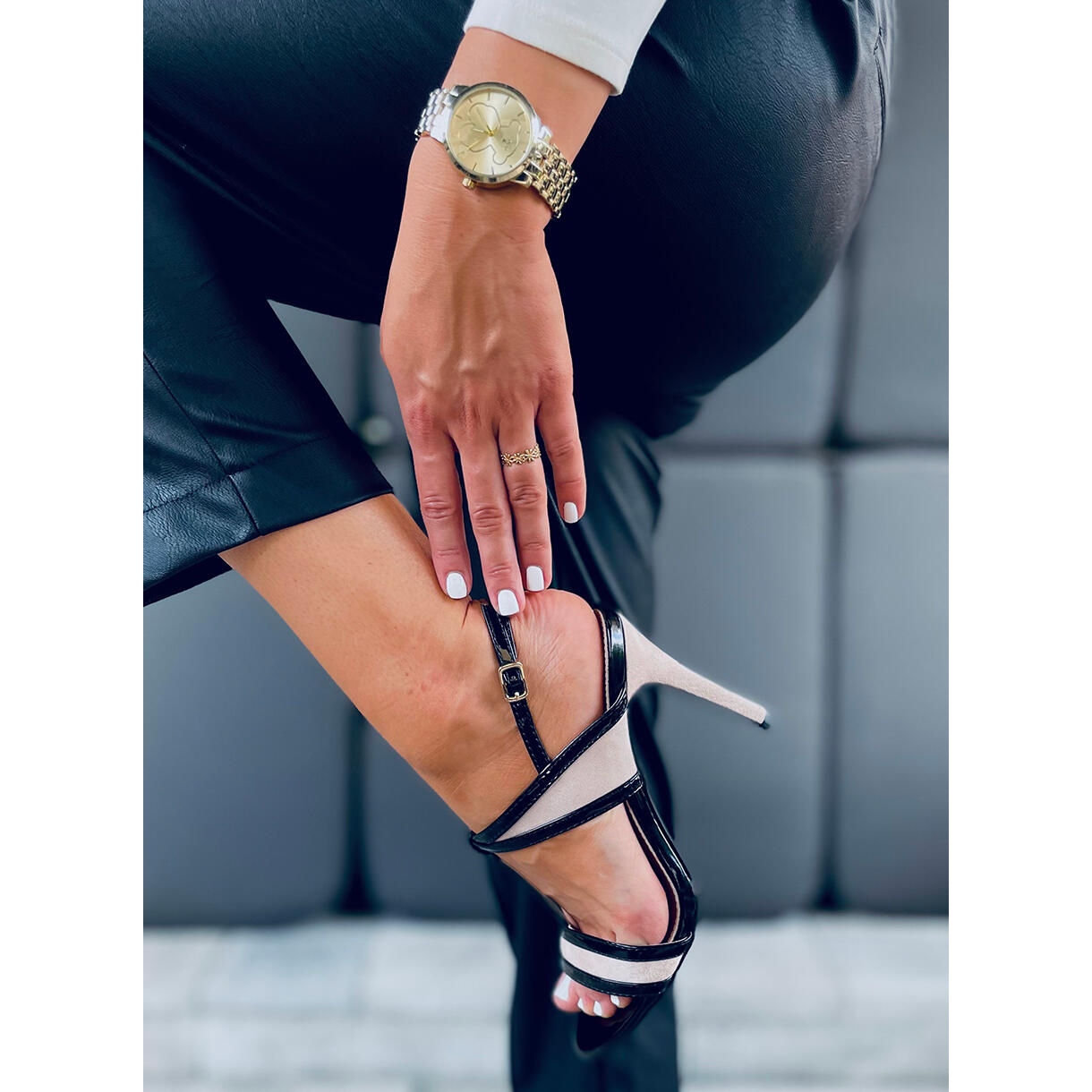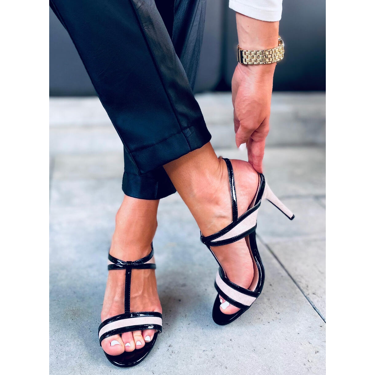 Découvrez l'élégance et le style avec les sandales à talons hauts Penny Apricot en beige et noir. Ces sandales uniques pour femmes allient un design moderne à une esthétique classique, ce qui en fait le complément parfait à n'importe quel style. Fabriqués dans une combinaison d'éco-suède et d'éco-cuir verni, ils sont extrêmement impressionnants, et leur talon fin de 10,5 cm de haut allonge optiquement les jambes, leur ajoutant du charme.