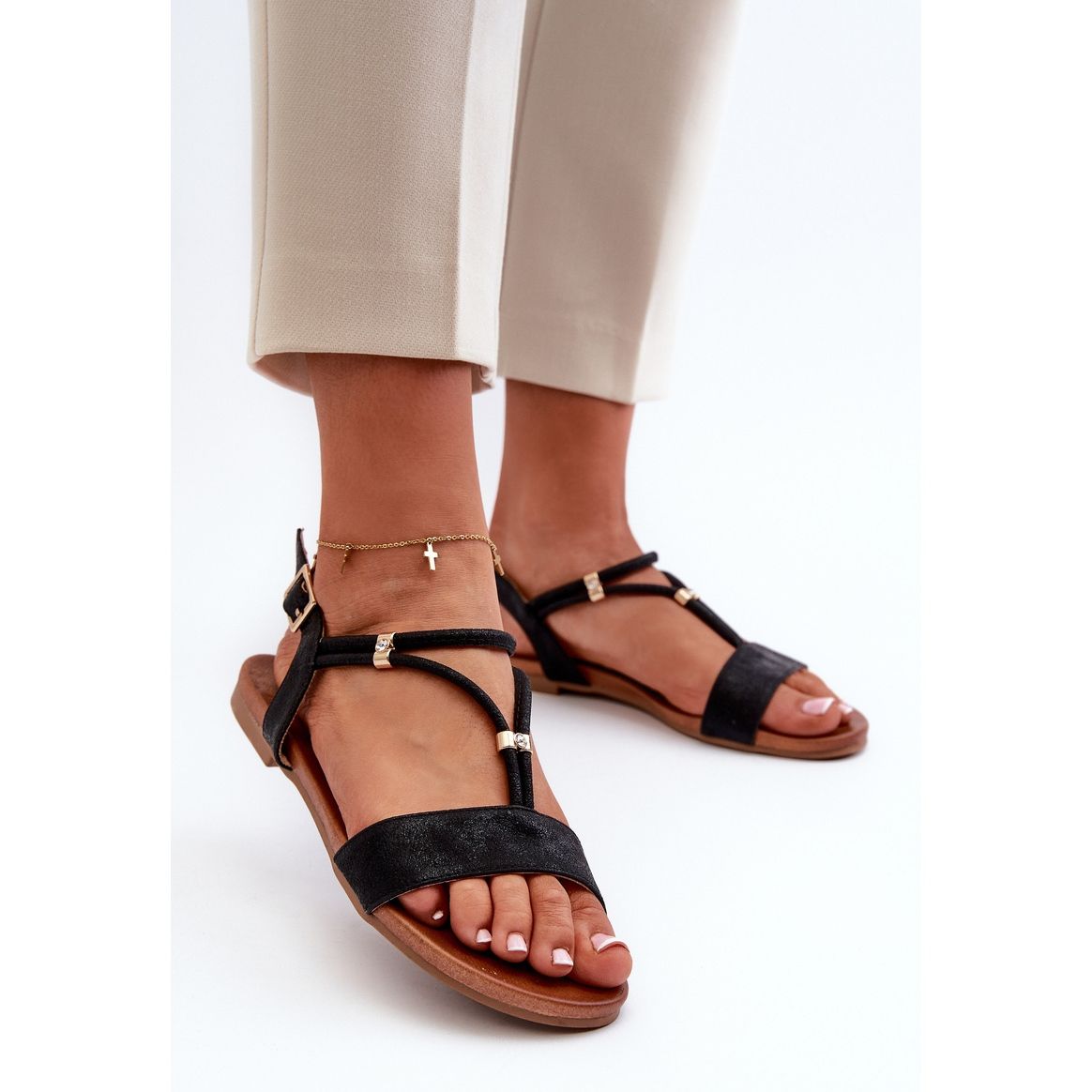 Détails: Sandales plates à brides pour femmes S.Barski KV27-010 Noir