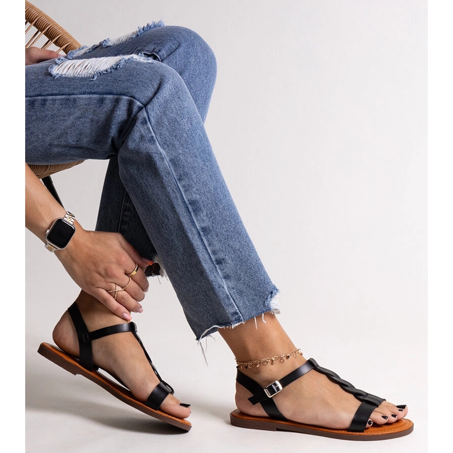 Sandales plates noires L'amarante est le choix parfait pour les jours d'été, combinant le style et le confort. Fabriqués en cuir écologique de haute qualité, ils garantissent le confort de porter même les jours chauds. Leur design classique les fait bien se fondre avec diverses stylisations - du décontracté à plus élégant.