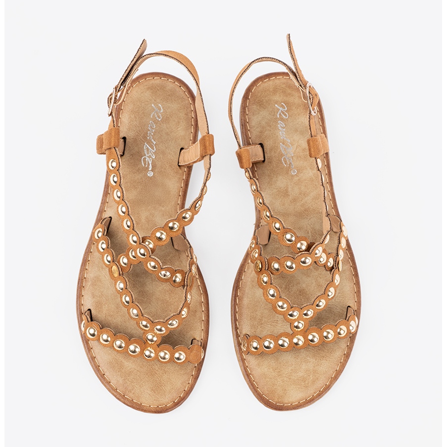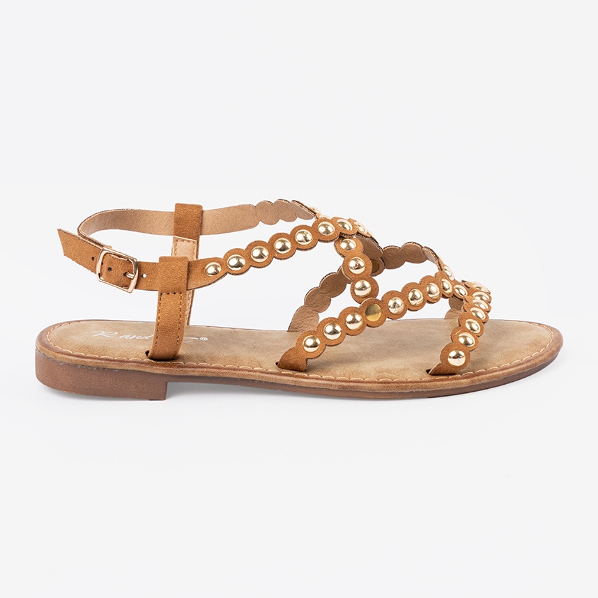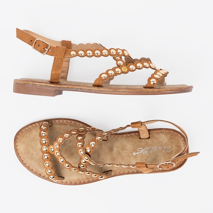 Découvrez les sandales plates en caramel unique avec des goujons qui combinent l'élégance et le confort, parfaits pour les jours d'été. Ces sandales ont été créées pour les femmes à la recherche de solutions à la mode et confortables.