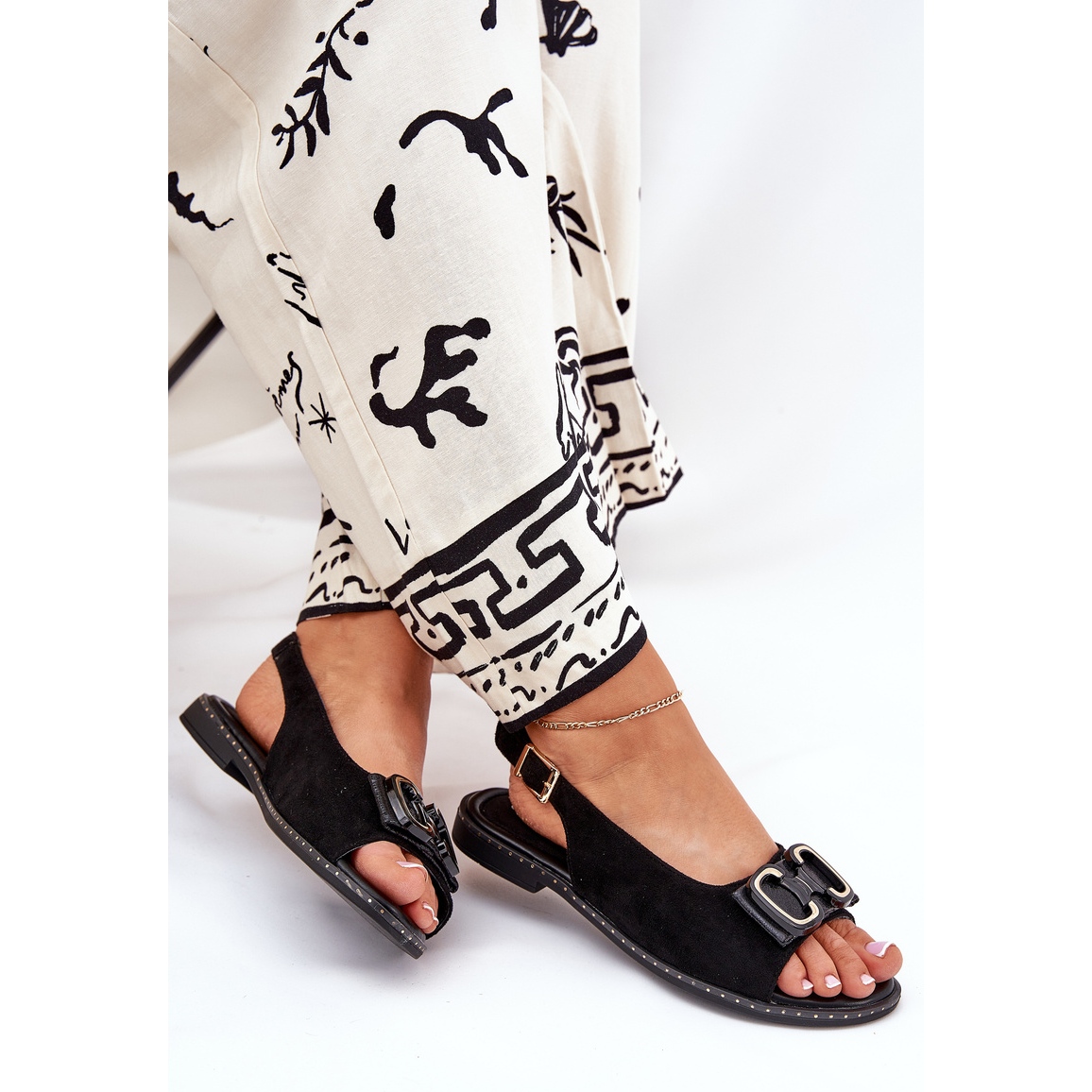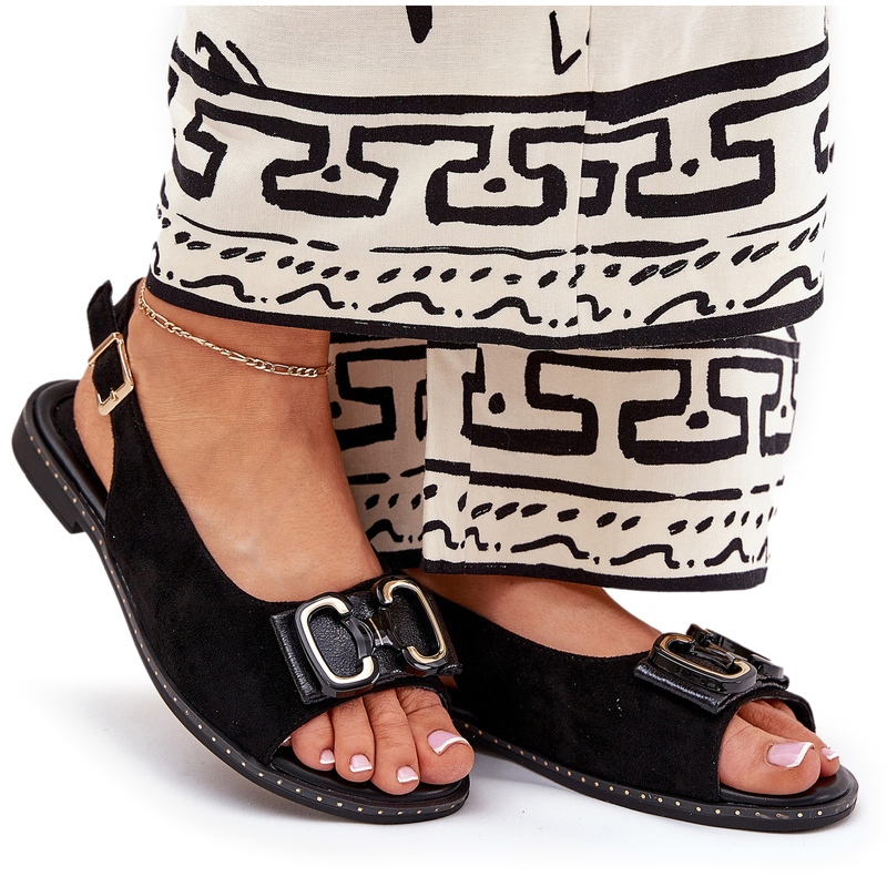 Détails: Jezzi Sandales plates avec décoration eco en daim noir le noir