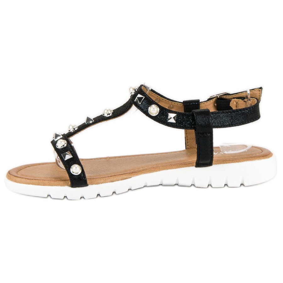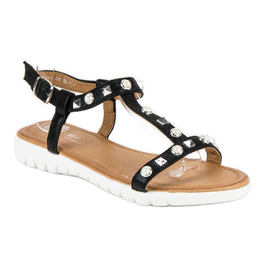 Nous vous présentons des sandales plates avec strass noirs, un choix parfait pour les chaudes journées d'été. Ces sandales pour femmes uniques se caractérisent par une coupe élégante et classique et une jolie finition sous forme de strass métalliques, qui leur confèrent un look original et prédateur.