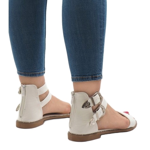 Nous vous présentons des sandales plates blanches avec une boucle 170 - le choix parfait pour les femmes qui apprécient le style et le confort ! Ces sandales extrêmement élégantes sont fabriquées dans une matière semblable au cuir, ce qui leur confère un caractère moderne. Leur design minimaliste combiné à leur couleur blanche les rend parfaitement assortis à différents styles du quotidien.