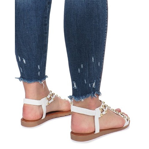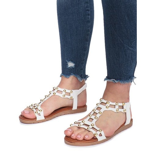 Découvrez le charme des sandales plates Summer Roman blanches de la marque Vices, qui seront le complément parfait à tout style printemps-été. Ces sandales uniques séduisent par leurs riches décorations en forme de clous dorés, qui, combinées à l'élégante couleur blanche, créent un design extrêmement tendance et impressionnant.