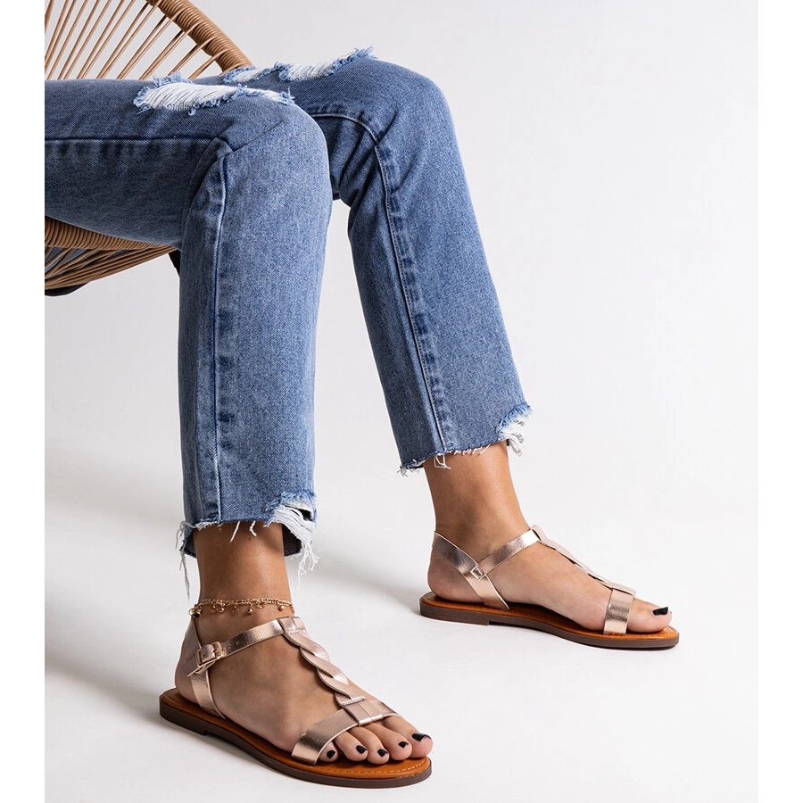 Les sandales se caractérisent par une semelle en caoutchouc, ce qui augmente leur durabilité et leur confort. L'absence de nez fait respirer vos pieds, ce qui est particulièrement important les jours chauds. Modèle 8093 Sandales plates métalliques de la marque Une autre marque est un incontournable de chaque tenue d'été.