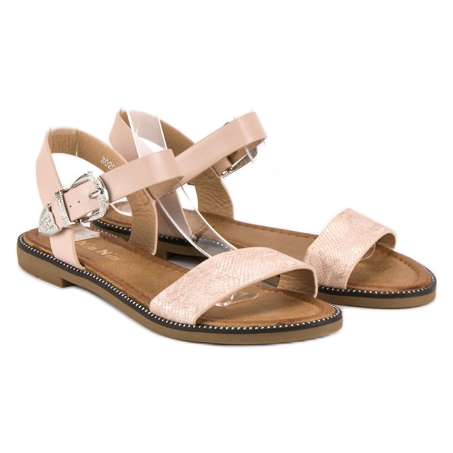 Découvrez le confort et le style avec les sandales plates Nio Nio en rose ! Ces chaussures élégantes, dédiées aux femmes, allient design tendance et confort de port. Fabriqués en cuir écologique, ils offrent non seulement une apparence attrayante, mais également le respect de l'environnement.