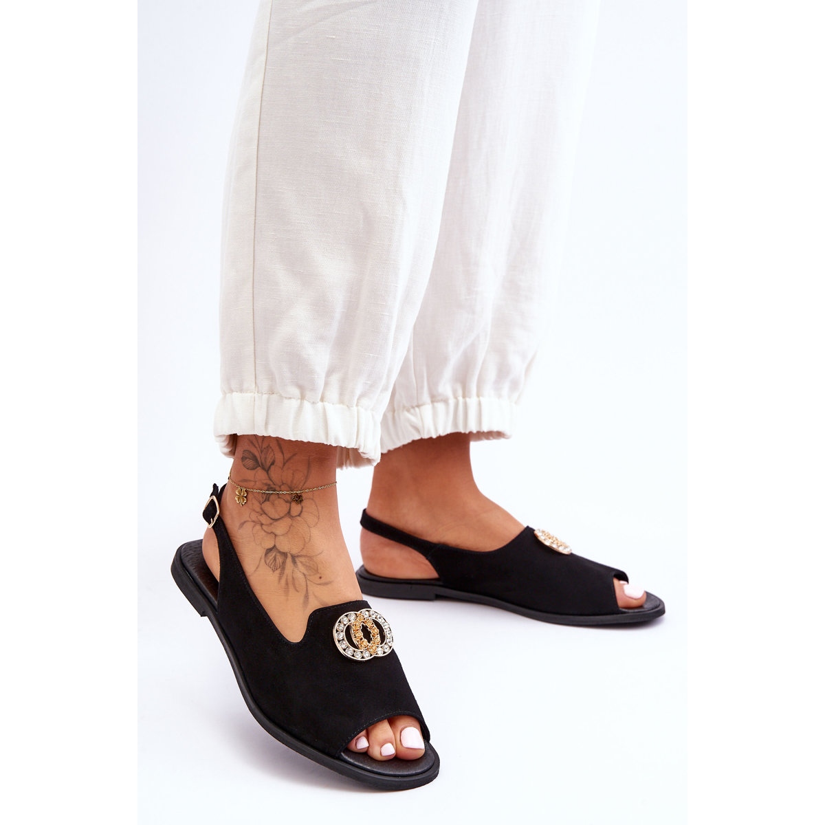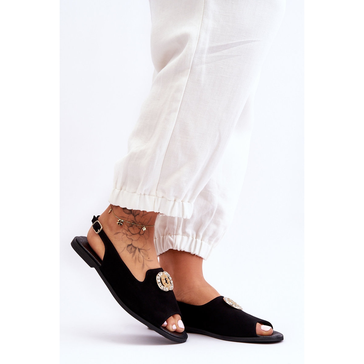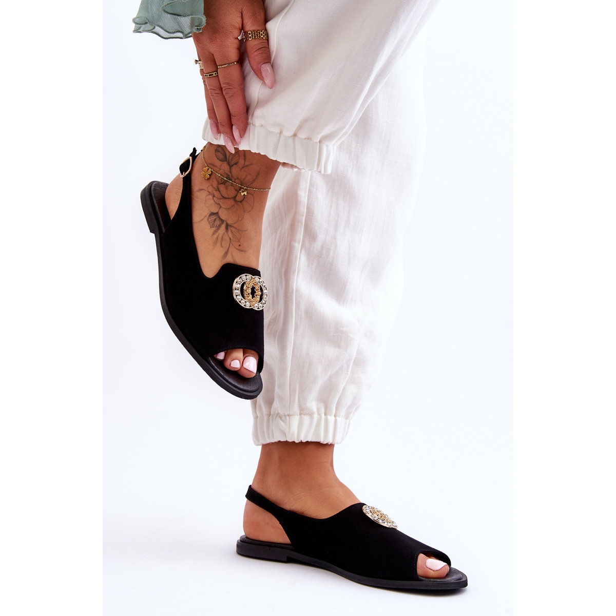 Détails: Sandales Plates Daim Avec Décoration Nicole 2744/002 Noir le noir