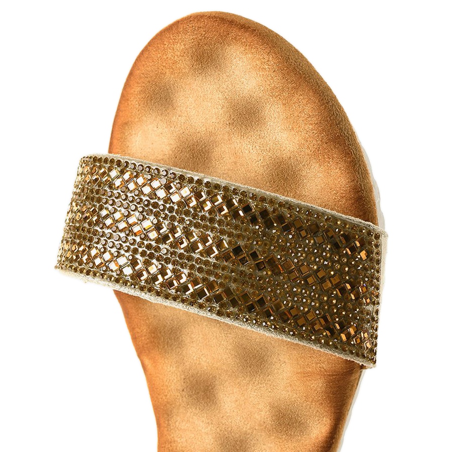 Détails: Sandales plates dorées ornées de HT-69 d'or
