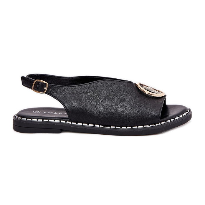 Détails: Sandales plates élégantes avec une décoration noire le noir