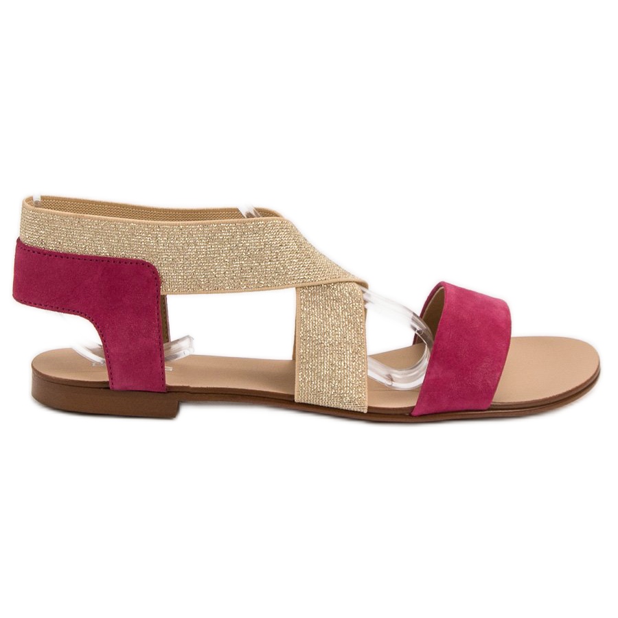 Les sandales plates élégantes SHELOVET dans les tons marron et rose sont une proposition idéale pour les femmes qui apprécient l'élégance et le confort. Ces chaussures plates originales allient design tendance et utilisation pratique. Une large bride élastique qui se croise au milieu du pied offre un excellent maintien, assurant un confort à chaque pas. De plus, deux brides en cuir imitant le daim d'un fuchsia intense leur confèrent un caractère unique.