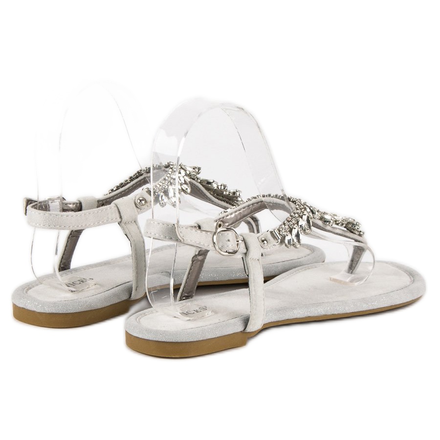 Les élégantes sandales plates Vices en gris sont une combinaison parfaite de style et de confort, parfaites pour les fêtes et les soirées d'été. Leur éclat subtil et leurs cristaux décoratifs attirent l'attention, ajoutant une élégance unique à chaque style. Ces sandales féminines se marient aussi bien avec des robes qu'avec des shorts, devenant un élément universel de la garde-robe pour les journées chaudes.