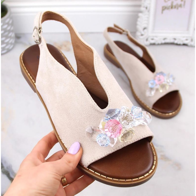 Détails: Sandales plates en daim avec cristaux Jezzi W RMR2266-2 beige