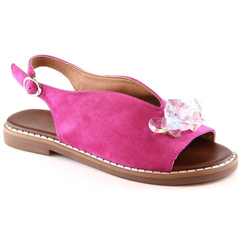 Détails: Sandales plates en daim avec cristaux Jezzi W RMR2266-2 fuchsia rose
