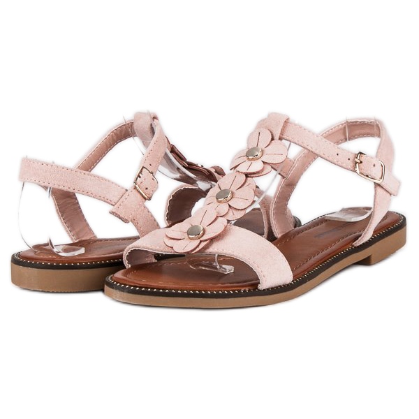 Détails: L. Lux. Shoes Sandales plates en daim rose