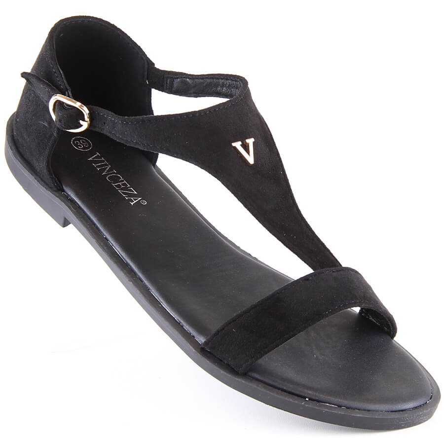 Détails: Sandales plates en daim noir pour femmes Vinceza 17270