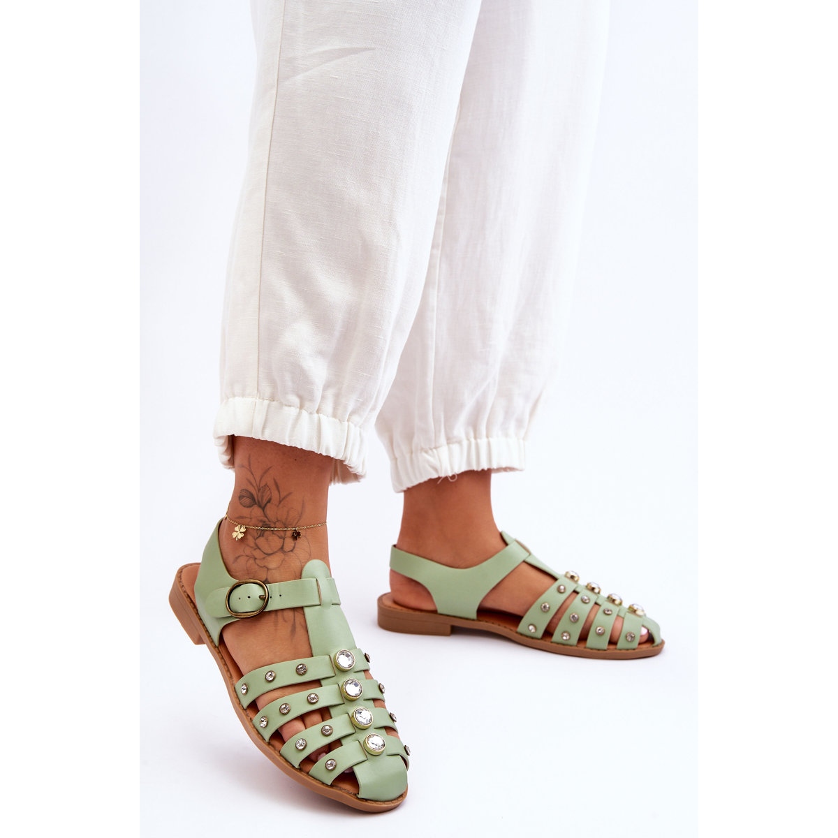 Inna marka Sandales Plates Femme Avec Zircon Vert Ascot